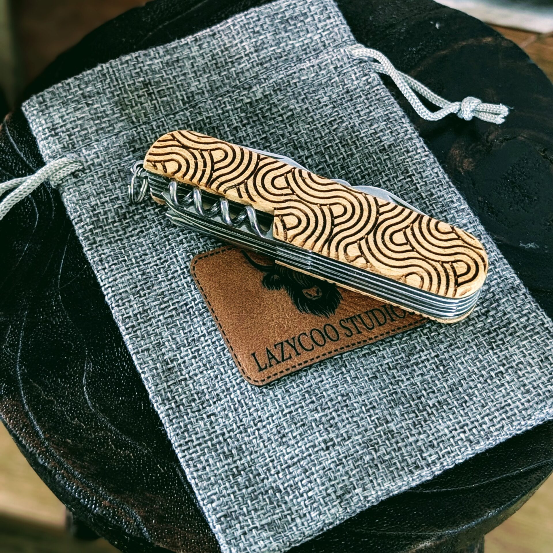 Handcrafted in our home studio, our Laser engraved beech wood multi tool make a unique gift!