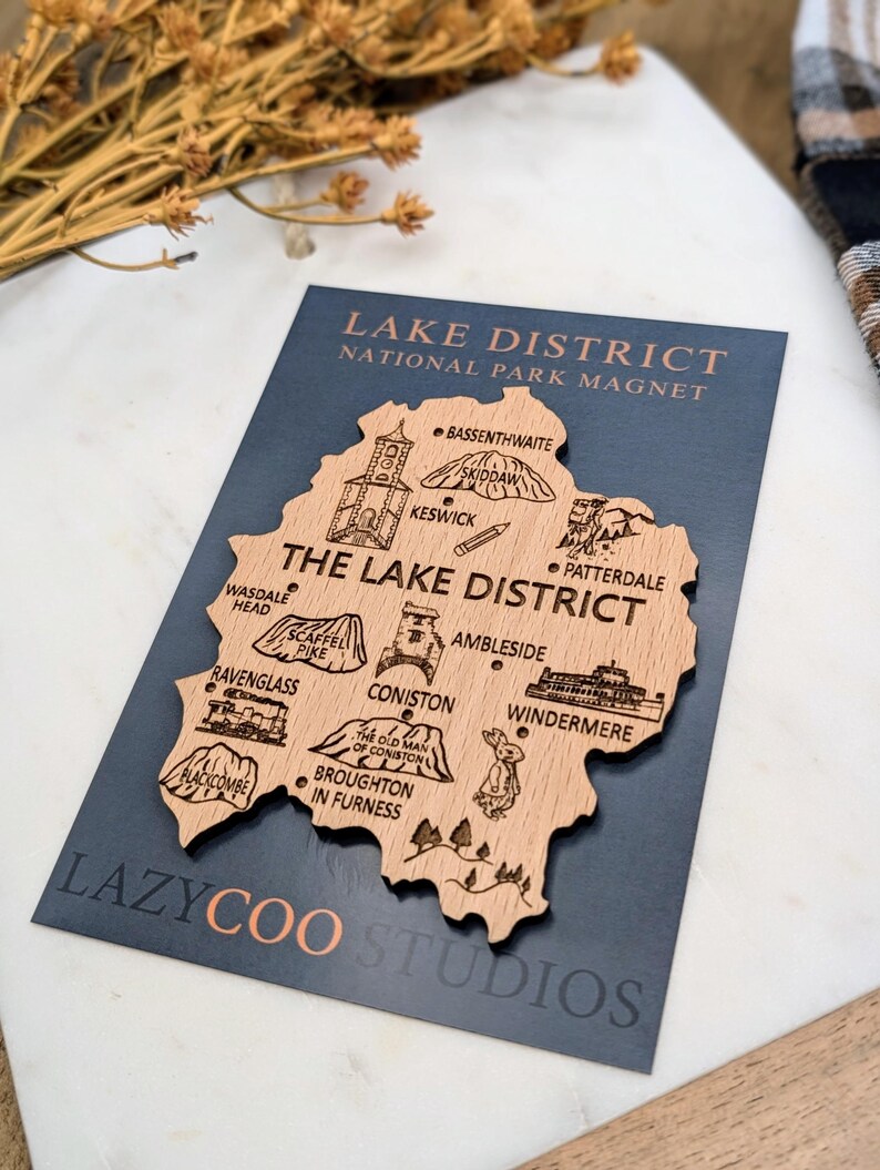 This wooden illustrated icon magnet is meticulously handcrafted and designed in our home studio by my husband and myself. The inspiration for this creation comes from the beautiful Lake District.