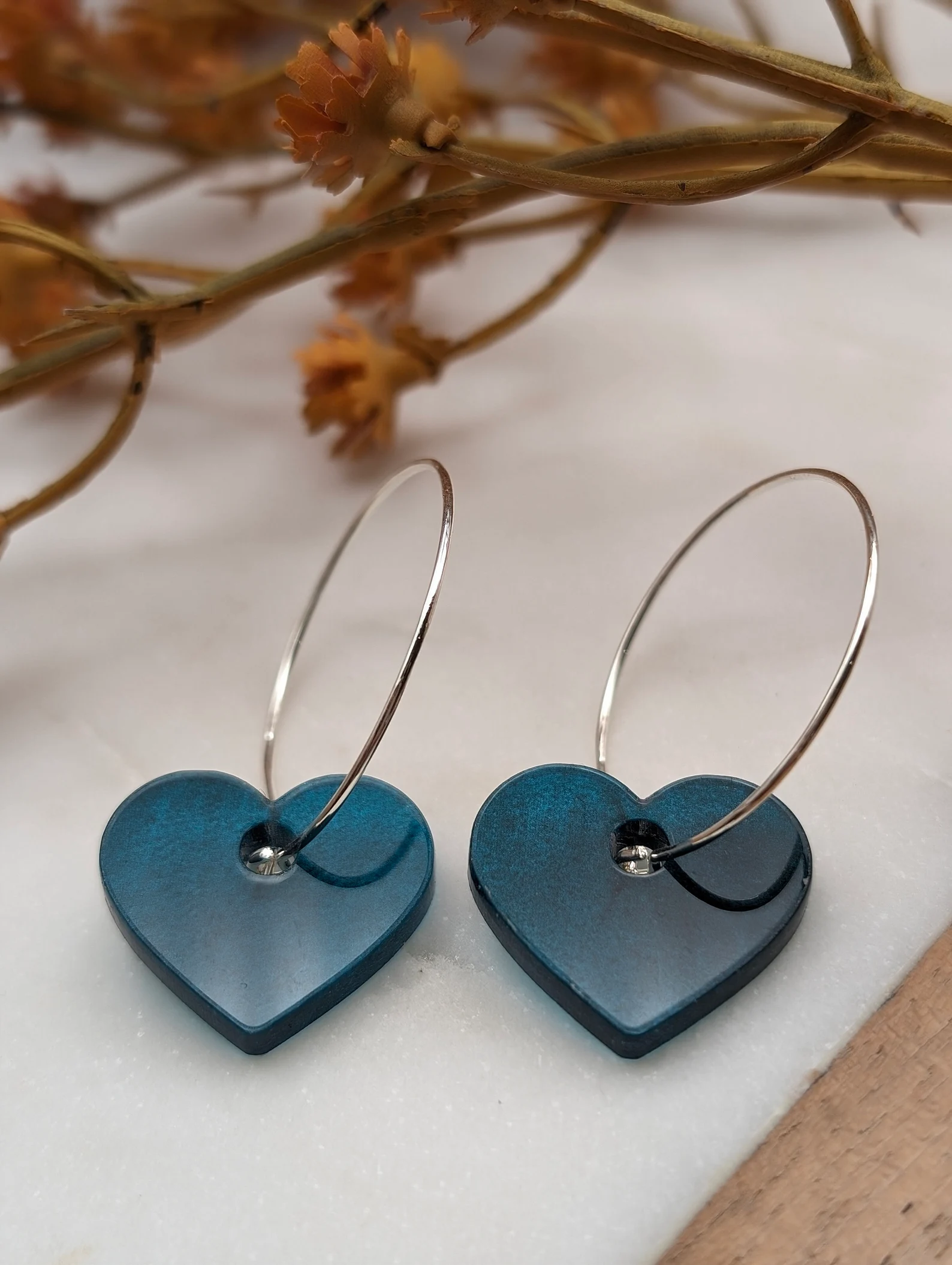 Minimalist heart hoop earrings. Summer lightweight acrylic jewellery with hypoallergenic hoops. Gift for her.