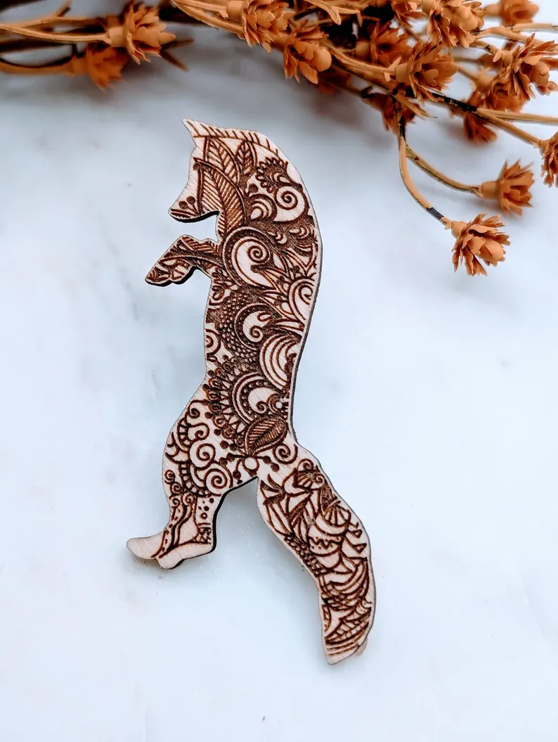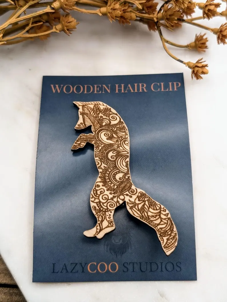 Wooden Fox Hair Clasp Mandala Boho Eco