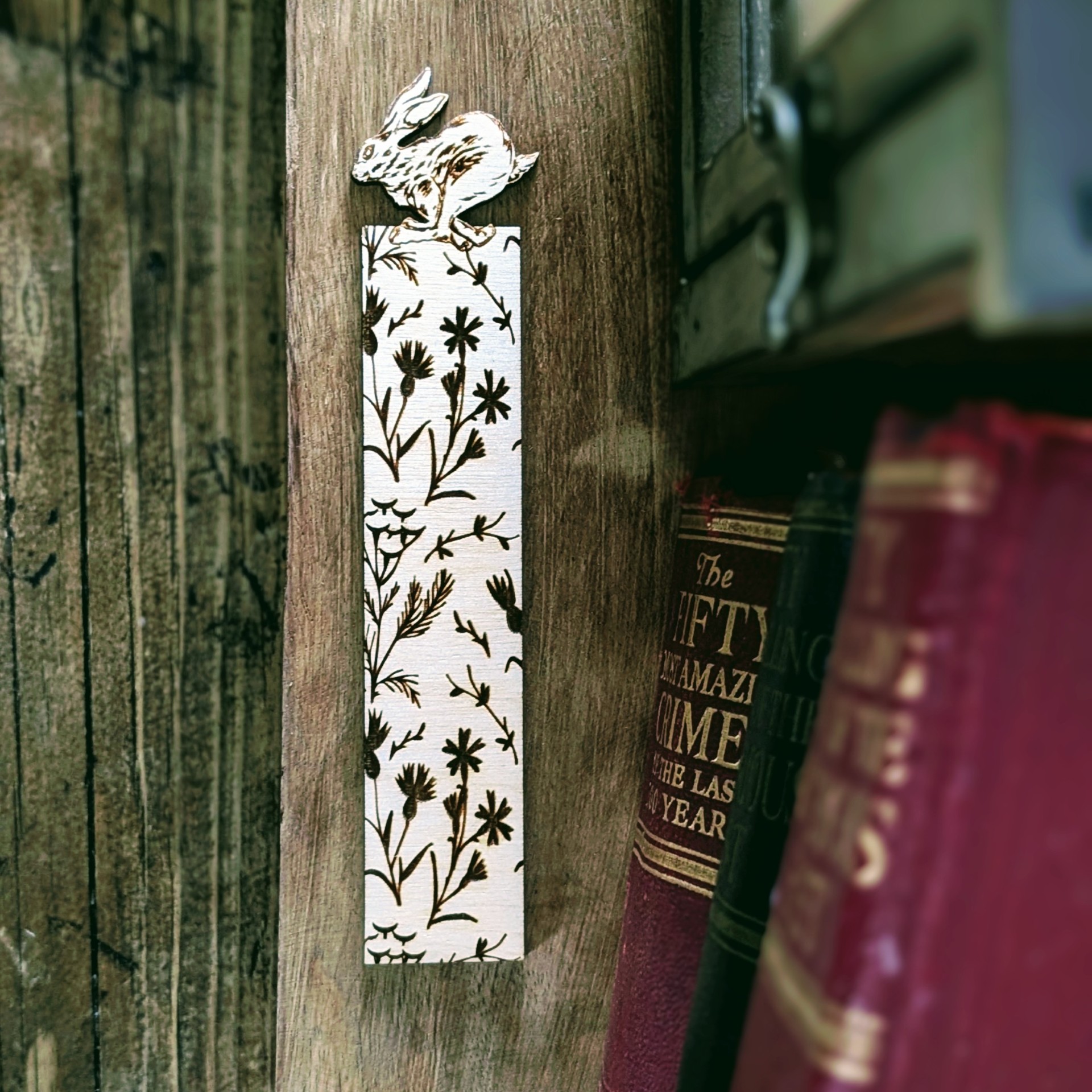 Wooden Hare Engraved Bookmark Floral