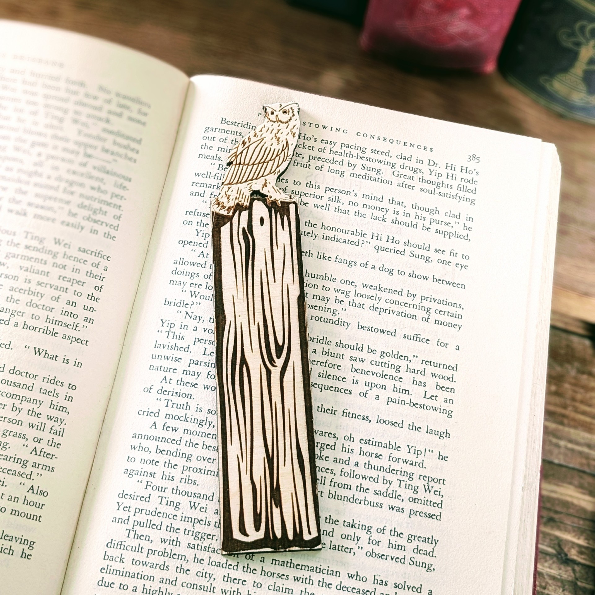 Wooden Owl Engraved Bookmark Tree Stump