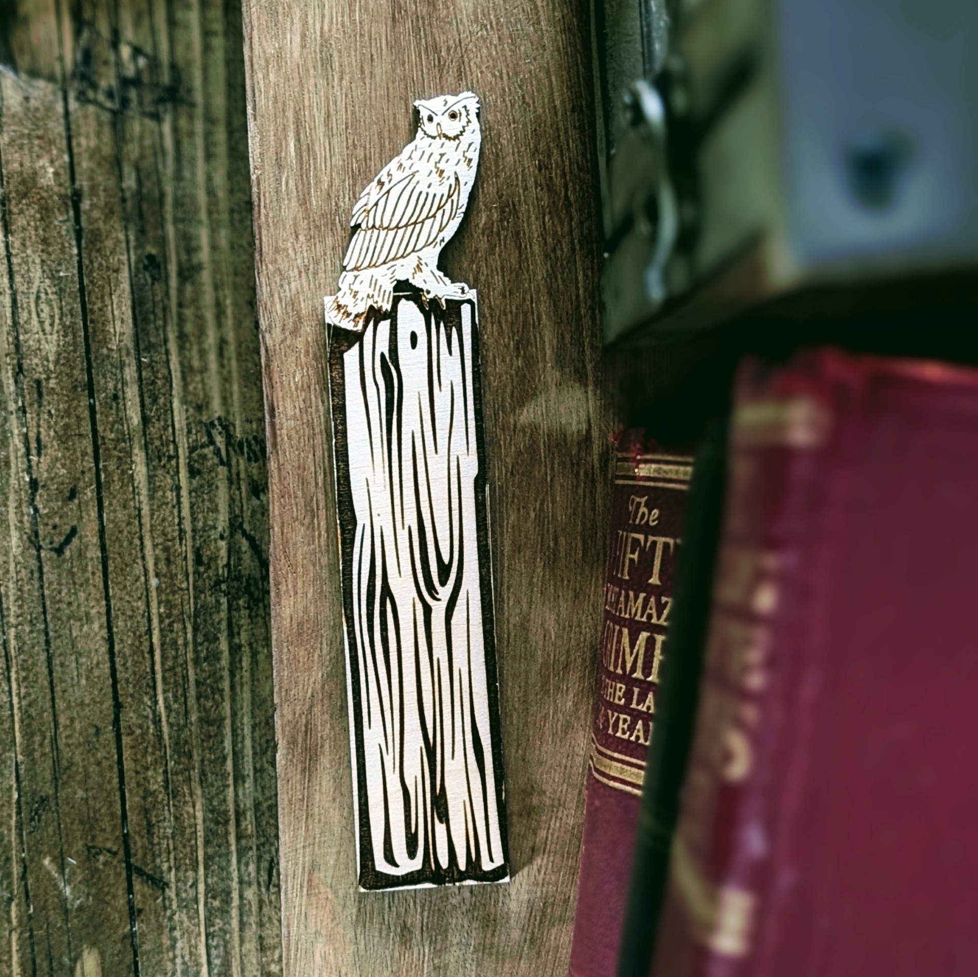 Discover the charming wooden owl engraved bookmark tree stump, perfect for nature lovers and a delightful addition to your autumn forest collection. Wooden owl engraved tree stump bookmark. Autumn forest. Woodland wildlife. Eco friendly. Nature lovers gift.
